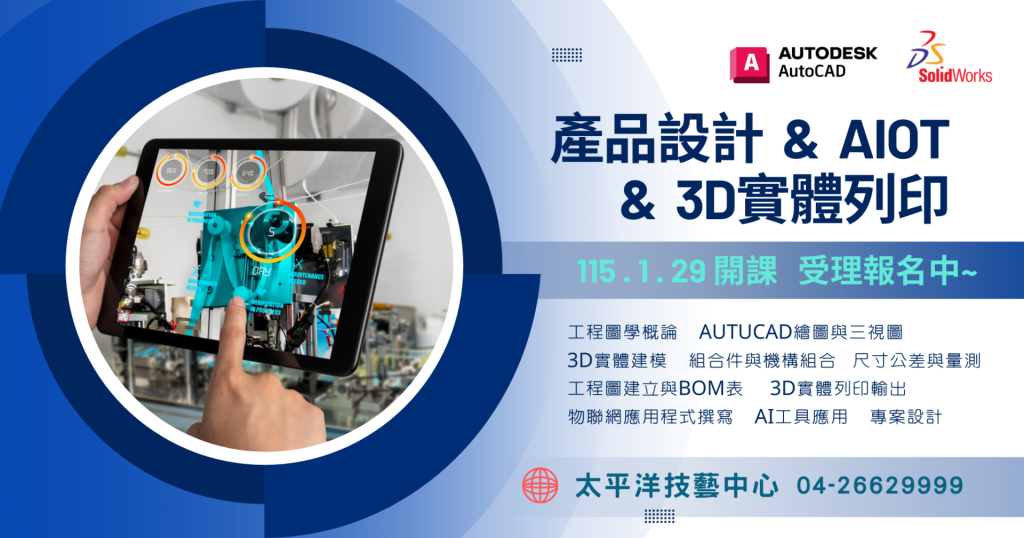 全部商品作者: haotaimaker / 13 2 月, 2023 全方位咖啡職人X智慧行銷應用班(第02期... 從咖啡職人到創業達人——全面掌握咖啡產業 【熱門】產品設計&AIoT&#... 零基礎也能跨足智慧設計,3D設計、AI智 花式咖啡與手工甜點實作班 青少年職業探索營來了!!—帶您體驗充滿魅 CAD繪圖暨3D列印與節能產品設計班 從零開始,利用3D列印設計打樣出自己的產 AutoCAD電腦輔助製圖實務班 業界師資給你畫圖撇步!! AutoCAD SolidWorks工業設計菁英班 3D產品設計師,就是你!! 設計產業最多 Solidwork進階鈑金應用班 不能錯過!玩轉工業設計領域!! 由資深師 Solidworks曲面與模具應用班 不能錯過!玩轉工業設計領域!! 由資深師 咖啡拉花實戰課程 台灣咖啡教母LISA老師親授 小班教學,